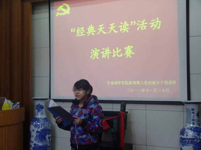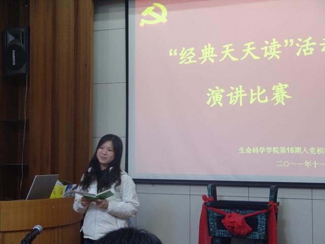 本次演讲比赛旨在深入贯彻十七届六中全会精神,加深学员对文化经典的感悟,读圣贤书,学处世道,在对经典的品读中净化心灵、提升人文素养。学员们纷纷表示,通过演讲比赛拓宽了视野,更加充分地认识到阅读的重要性。今后定将坚持学习经典文化,努力提高自身综合素养,争做时代先锋。(生科院 李淑勤)