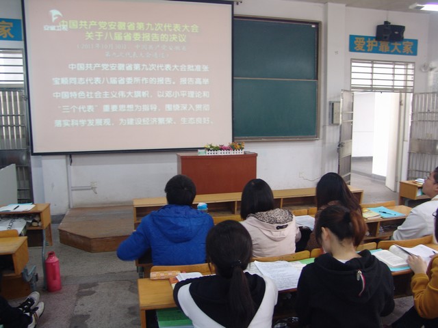 学员们首先通过视频认真学习了省第九次党代会精神。安徽省第九次党代会是全省“十二五”顺利开局的新形势下召开的一次重要会议。大会全面回顾和总结了过去五年的工作成效和基本经验,科学分析了当前的形势和任务,对未来五年安徽省各项工作作出战略了部署。视频学习结束后,学员们就省第九次党代会精神展开了热烈的讨论,纷纷发表自己的见解,阐述心得体会。10级学员代表王海霞谈道:“张宝顺书记的报告,立意高远,具有很强的针对性、指导性,特别是提出“走出六条新路”、打造“三个强省”,鼓舞人心,催人奋进。激励着我们当代老员工为建设祖国美好未来而努力奋斗。”