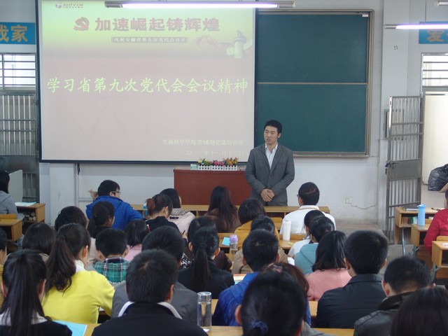 讨论结束后,李古州老师作了总结讲话。他指出深入学习省第九次党代会精神的重要意义,同时要求全体学员继续深入学习领会会议精神,严格要求自己,做好榜样及示范作用,不断提升自身综合素养,为建设经济繁荣,生态良好,人民幸福,社会和谐的美好安徽而努力奋斗。(生科院 文/李淑勤、唐晓丽 图/傅学浩)