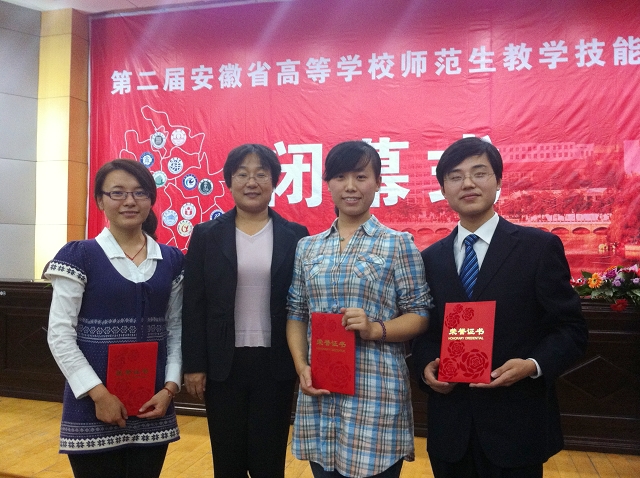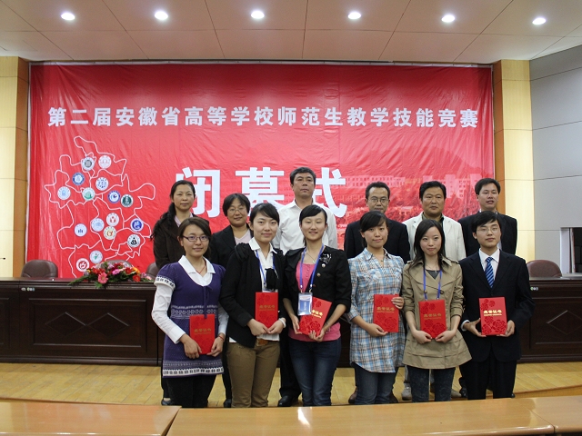 10月14日至16日,由安徽省教育厅主办、m88官方网站登录地址承办的第二届安徽省高等公司师范生教学技能竞赛在公司成功举行。来自全省19所高等院校的37支代表队共计111名选手参加了比赛,公司08级本科生肖惠瑗、魏露同学表现出色,分别荣获了理科组特等奖、一等奖的好成绩。