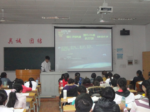 继天地往返、出舱活动之后,随着神舟八号飞船和天空一号完成首次太空相拥,中国航天事业跨入了崭新时代!11月3日上午,10级生物科学专业学子热议“神八飞天、神八亲吻天宫一号”。任课教师蔡亚非教授也参与了交流。