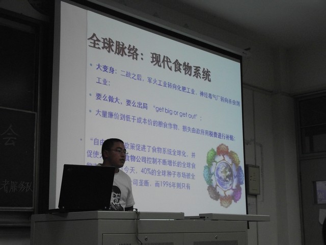 辛林强是中国人民大学可持续发展高等研究试验区姬山书院办公室主任、历任陕西省老员工支农队负责人、中国人民大学乡村建设中心“人才计划”西北区负责人,唐义国为中国人民大学乡村建设中心“农村可持续发展人才培养计划”学员,他们均是环保志愿者、生态农业生产消费者、可持续发展生活倡导者。两位主讲人着重讲解了生态农业的相关知识,鼓励青年老员工转变固有思维模式,走可持续发展的道路,在有机农业和生物动力农业方面大展宏图。他们提到:“作为生物专业的我们,尤其要坚持“关注农村、关爱农民、支持农业”的发展宗旨,背负起当代老员工的使命,把所学运用于实践做“四有”新人,充分发挥自己的价值,为“三农”服务。此外唐义国向大家介绍了志愿者的性质、志愿工作的意义,辛林强就当代文化走向及青年老员工的选择展开讨论。新农村建设、志愿服务与青年人的选择三个话题相辅相成,引起了台下同学们的积极参与。一位新生发言:“作为生科院的一名员工,我有信心也更有优势,拿出志愿服务精神,为农村的可持续发展添砖加瓦,成就自己的梦想。”