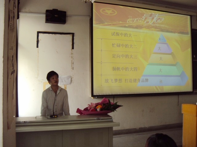 人生的价值在于不断地挑战自己、战胜自己,为自己的天空画上美丽的风景。报告会上,王永雷向大家讲述了他作为一名老员工,积极探索实践、不畏艰辛、脚踏实地,继而成长为弗莱卡健身会所董事长的人生经历。他用亲身经历向大家传达了新时代老员工自强不息、努力创业的拼搏精神,让同学们明白了什么叫坚持,什么叫梦想。“既然选择了远方,便只顾风雨兼程”,王永雷用他平凡却不简单的创业经历鼓舞了在场的每一位同学。王娟在报告中首先告诉大家,大学是高度自由与高度自律的结合,应该努力给自己寻找一个理由去奋斗。接下来她以亲切的语言与大家分享了自己在大学三年的一些学习经验和远赴四川省大竹县金鸡乡一座深山小学义务支教时的感受,虽经受余震不断、生活困难等重重考验,但团队以顽强的毅力,用无私的奉献精神完成了支教活动。王娟希望通过自己的努力帮助更多的员工学习知识,让他们实现从受助到自助的蜕变!最后她还向在场的各位新生介绍了以“绿色志愿者”为代表的校园素质拓展活动的开展情况,通过观看当时的照片,使同学们了解到了志愿者活动中的种种乐趣与意义,同学们深受触动,现场的掌声经久不衰!