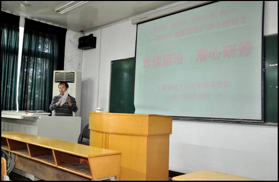 9月21日上午9点30分,“国培计划(2011)”初中生物置换脱产班在m88官方网站登录地址继续教育公司三楼报告厅举行了“珍惜国培潜心研修”的主题班会。