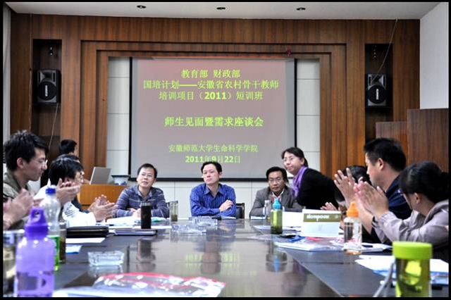 9月22日,m88官网在公司一楼报告厅举行“国培计划”(2011)初中生物置换脱产班师生见面暨需求座谈会,部分国培教师及全体学员出席会议,会议由班主任涂传林副教授主持。