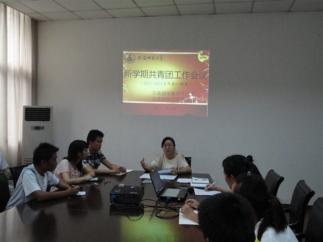 会议由组织委员储宇航主持,会上,贾瑞对上学期团委工作做了总结,对新学期团委工作提出了要求和希望。她强调:新学期团委工作要以爱国主义为切入点,以党校、团校培训为平台,以校园精神文明建设为载体,立足校园、立足专业、开拓创新,为将广大团员青年培养成为“信念执着、品德优良、知识丰富、本领过硬”的新时期党的后备军而不懈努力。宣传委员刘雯婷就新学期共青团工作进行了具体的布置。与会人员踊跃发言,积极献计献策,提出了许多宝贵的建议。
