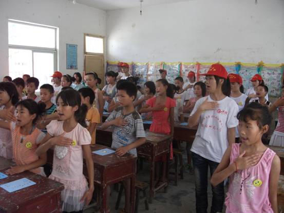 上午7时,团队全体成员带着宣传资料和礼品来到王寨小学,任老师对实践团队的到来表示了热烈的欢迎。团队队员与员工们进行了积极的互动,手把手地教同学们学习《感恩的心》手语,希望他们了解这首歌的真正含义,怀揣一颗感恩的心去对待身边的人,尤其是需要关怀的艾滋病人。在艾滋病知识竞答的互动环节,员工们表现踊跃,争相回答问题,实践团队对答对同学发放了精美的小礼品。座谈环节中,实践团队成员向同学们讲解了有关艾滋病传播与防范的基本知识,使同学们对艾滋病及其防治有了初步了解。活动结束时,任老师向我们表示诚挚地感谢,并鼓励同学们向实践团队的哥哥姐姐们学习,将来走进大学,成为国家的栋梁,为社会做贡献。