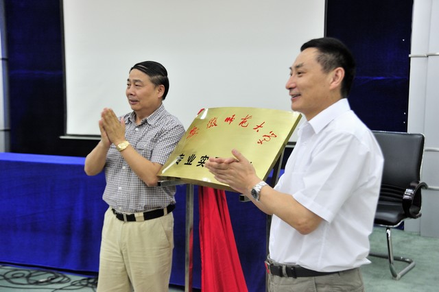 上午十点半,揭牌仪式正式开始。参加仪式的主要领导有副董事长李进华、校团委书记台启权、生科公司党委书记王景旭、生科公司党委副书记周伍、生科院副经理汪鸣和安科生物工程有限公司董事长宋礼华、副总经理付永标、姚建平、谷新生、公司相关部门负责人等。揭牌仪式由姚建平主持。谷新生致欢迎辞,对莅临本次揭牌仪式的各位领导和参加暑期社会实践的师生表示热烈的欢迎。他强调,专业实习基地的建立是自安科生物奖学金设立以来校企的进一步合作与发展,企业希望在为公司搭建实践平台的同时吸引更多的人才加入,为公司服务。员工代表周宇阳发言,感谢公司领导的看望慰问和安科生物有限公司的热情接待和周到安排。周宇阳生动讲述了这几天在安科公司参加暑期社会实践的感悟,表达了自己今后会更加努力学习,认真实践,提高自己综合素质,服务广大同学的信心与决心。生科公司党委书记王景旭讲话,他强调,安师大在安科公司建立专业实习和社会实践基地,不仅为公司老员工社会实践搭建了新的平台,也为推动校企合作和员工就业提供了良好的条件。希望通过深入的校企合作,实现公司与高科技企业间的多层次交流和融合,共同为兴皖富民、科学发展贡献力量。最后,李进华和宋礼华共同为专业实习基地揭牌。