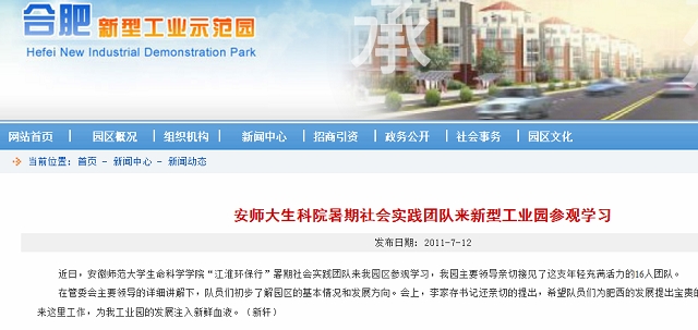 “绿动庐州,我看肥西”,7月4号上午,m88官网赴肥西暑期社会实践团队一行16人来到位于肥西县的合肥新型工业区参观学习。在示范园党工委书记李家存的详细讲解下,队员们初步了解园区的基本情况和发展方向。座谈会上,李家存还希望队员们为肥西的发展多提宝贵的意见并欢迎大家毕业后来这里工作,为工业园的发展注入新鲜血液。工业园网站对本次活动进行了报道。