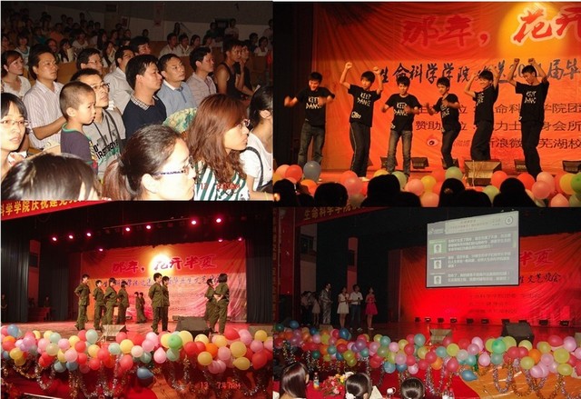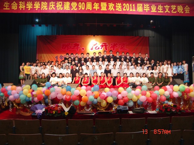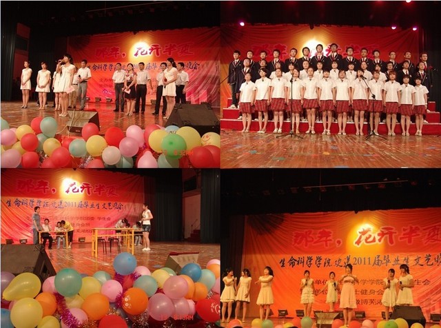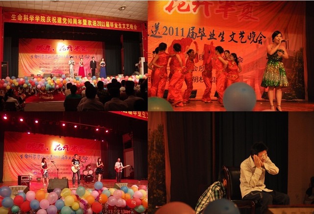 整场晚会高潮迭起,掌声如潮。两个小时的毕业晚会在这充满祝福与喜悦的季节里盛情度过,庆祝建党90周年和欢送毕业生的主题完美融合。同学们肩负着时代的使命,牢记着师长的嘱托,即将踏上新的征程。让我们共同祝愿2011届毕业同学前程似锦,好梦成真,一路顺风。(生科院 文/毛琳 图/王振)