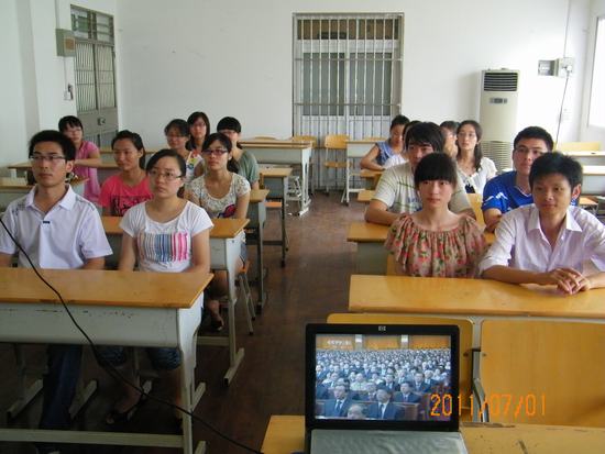7月1日上午,庆祝中国共产党成立九十周年大会在北京隆重举行,胡锦涛总书记在大会上发表了重要讲话。生科院组织部分留校师生通过电视直播集体收看了大会实况。