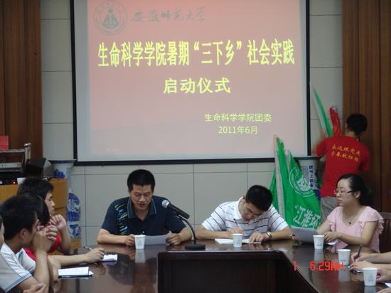6月30日下午,生科院在公司学术报告厅举行了2011年老员工暑期“三下乡”社会实践活动启动仪式。校团委副书记邵登辉、公司党委副书记周伍、暑期社会实践活动指导教师代表以及重点团队员工代表参加了仪式。仪式由团委副书记贾瑞主持。