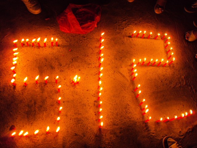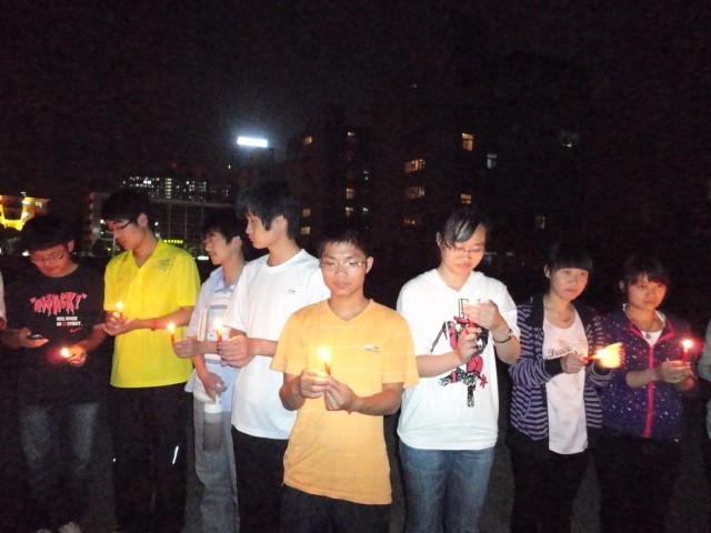 下午,同学们一同观看了《纪实5·12》的影片,回顾了三年前的汶川,满目疮痍;但如今,重现眼前的是天翻地覆的三江风景区,游客笑靥如花。凤凰涅槃的汶川,处处生机勃勃,从物质基础到精神文化,经过三年的重建,汶川终于站到了腾飞的新起点。同学们无不惊叹于地震后汶川的飞速发展,感悟了从悲壮走向豪迈的中国奇迹。随即,班委会组织参与者转战西操场,点燃蜡烛,齐唱《感恩的心》和《国家》,共同为灾区人民祈祷明天会更好,将深深地祝福传达至四川。