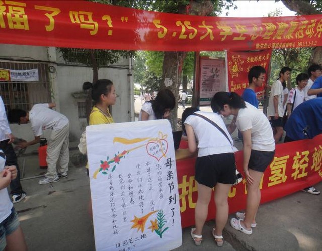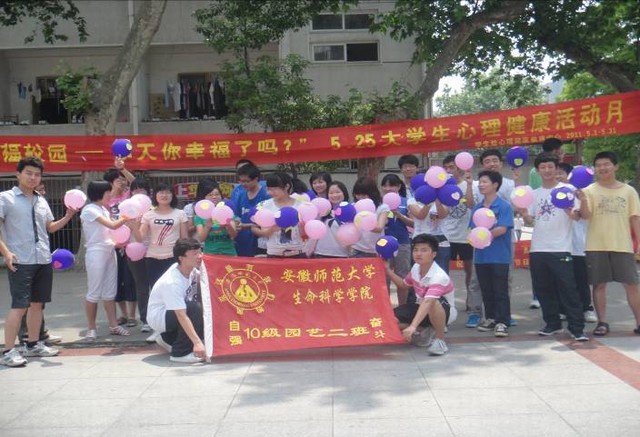 5月7日,2010级园艺专业在校食堂门口积极组织并开展了以“祝福轻轻送母亲”为主题的“放飞氢气球、祝福母亲节”系列活动。