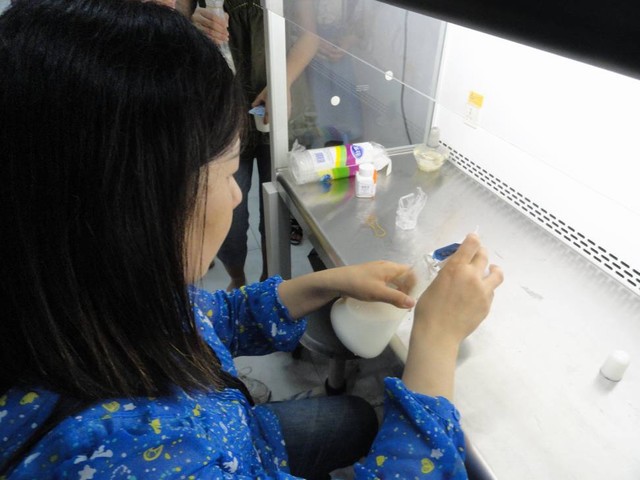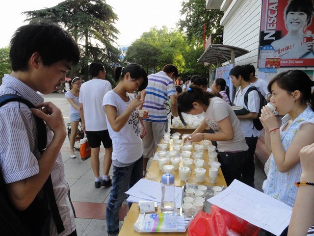 本次大赛分为宣传报名、笔试角逐、酸奶制作及酸奶品尝四个环节。在为期五天的报名阶段, 400多名师大学子报名参赛。5月7日中午十二点,通过笔试对报名参赛的选手进行了严格公正的初选,最终来自赭山校区和花津校区各个公司不同年级共计30组晋级决赛。5月8日上午九时,酸奶制作在生化楼微生物实验室正式开始,酸奶制作由生科院微生物教研室老师汪建中和杨安娜全程指导,他们主要向参赛选手介绍酸奶制作的原理、营养价值及酸奶的具体制作工艺和注意事项。讲解完毕,在老师的悉心指导下,选手们两人一组开始制作酸奶。实验过程中,同学们认真仔细、全身心的投入到生产实践的乐趣中。最后,同学们将自己制作好的酸奶放进恒温箱,依依不舍的离开微生物实验室。5月9日,酸奶发酵完成,由协会理事组织人员在食堂门口进行了现场品尝,围观品尝的同学老师很多,大家都津津有味地品尝着员工自己制作的酸奶,之后由专业老师及各个协会的负责人评选出本次活动的优胜者。5月14日,部分参赛选手在生科协理事的带领下来到微生物实验室进行参观学习,师生共同探讨生物学知识,氛围融洽和谐。