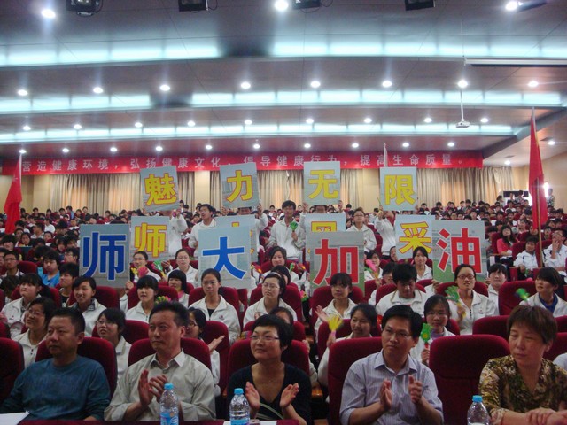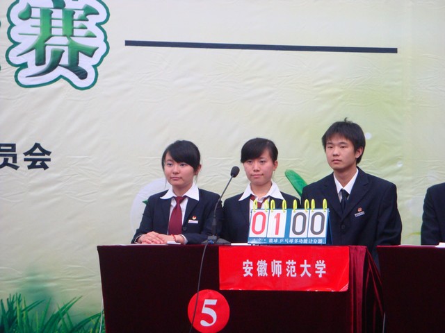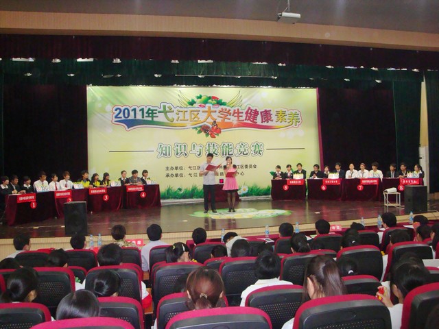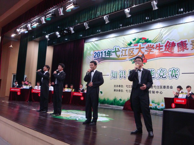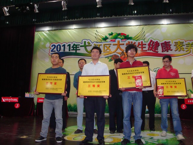 经过生科院团委和老员工保健协会为期将近一个月的校内选拔,4月27日下午,生科院三名选手和50人的啦啦队方阵在领队李古州老师的带领下来到安徽机电职业技术公司代表公司参加2011年弋江区老员工健康素养知识与技能竞赛。