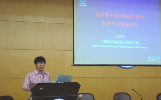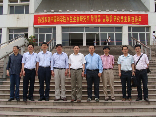 5月9日上午,生科院在田家炳楼报告厅举办了第五届研究生科技文化艺术节之系列学术报告会,报告人分别是中国科公司水生生物研究所的桂建芳、王洪铸、王桂堂、解绶启等四位研究员,他们依次作了题为“多倍体银鲫生殖方式多样性的生物学意义和育种价值”、“湖泊富营养化的成因及治理”、“鱼类寄生虫的生态学”、“中国科公司水生生物研究所研究生招生专业及导师简介”的学术报告。全院200多名师生聆听了报告。