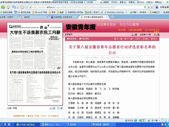 近日,团省委、省文明办、省青年志愿者协会对全省志愿服务先进个人和单位进行了表彰,公司蔡凌睿同学被授予“安徽省第八届优秀青年志愿者”荣誉称号。