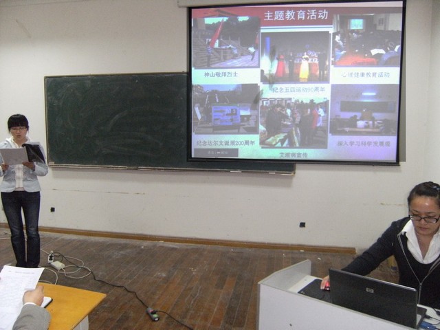 经过初评,来自08、09级的四个团支部参加了本次交流评比。参评的各支部汇报人在现场借助ppt进行汇报展示。他们分别从支部的组织建设、日常管理、党团工作、思想教育活动、学风建设等方面向大家一一展示了支部的特色。生动精彩的讲解让大家感受到支部成员的青春激情与努力进取,系统规范的支部建设及丰富多彩的团员活动图片更让大家眼前一亮,整个交流评比过程精彩纷呈。最终,评委们在认真听取汇报和阅读申报材料后,评选出08生科一班团支部为“五四红旗团支部”。