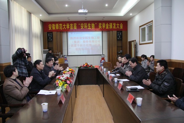 3月2日下午,m88官方网站登录地址首届安科生物奖学金颁奖大会在生科院学术报告厅隆重举行。安徽安科生物工程(集团)股份有限公司副总经理姚建平、m88官方网站登录地址副董事长李进华、员工处处长余国升,公司党政领导班子出席仪式并为获奖同学颁奖。生科公司党委书记王景旭主持颁奖大会。