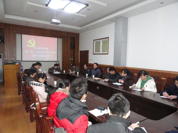 12月22日下午,m88官网教工党支部与老员工生命科学协会、老员工保健协会及考研行动协会在公司一楼会议室举行了结对共建座谈会。院教工第一党支部书记胡好远、第二党支部书记程双怀、公司实验中心主任李晋、员工社团指导老师朱升学、教工党员刘再群、邵剑文、李恩、涂传林、张杰、张晓平、夏行权等老师及各协会主要负责人出席了座谈会,程双怀主持会议。