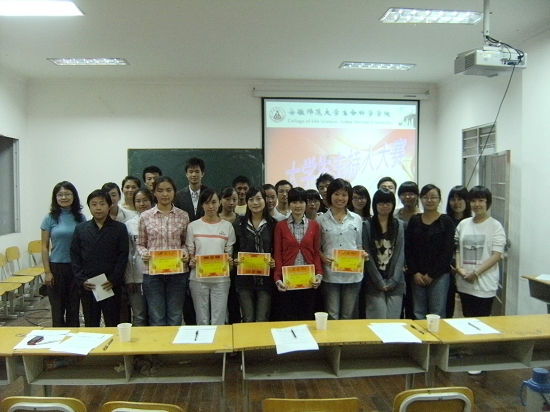9月25日晚,m88官网在生化楼研究生教室举办了老员工主持人大赛院内选拔赛。院团委书记汪倩倩、09级辅导员贾瑞老师和院员工会主席魏露出席了比赛并担任比赛的评委。