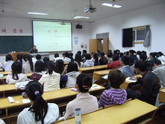 晏老师就说课的含义,说课的特点和基本内容等方面进行了详细地阐述。晏老师指出,作为一种重要教研方式,说课也是目前中等公司选聘老师的重要考核手段。在着重介绍如何说课,锻炼自我的同时,晏老师还通过对大量实例的列举就说课过程中的一些注意事项进行了精彩的点拨,晏老师谈吐幽默,旁征博引,赢得同学们的阵阵掌声。