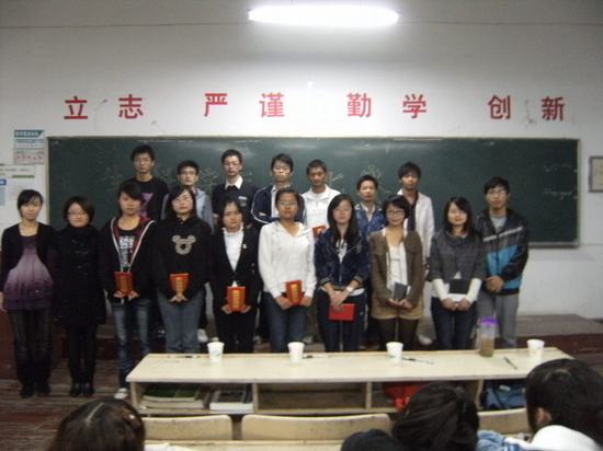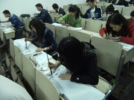 比赛要求选手们在规定的时间内同时完成毛笔字、硬笔书法和粉笔字三项创作。伴随着中国古典乐曲的优美旋律,选手门尽情发挥,书写出一幅幅别具风格的书法作品。最后,王小伟和周阿胜两位同学荣获比赛一等奖;张业功、王哲、柳俊先和方翔四位同学荣获二等奖;葛亚美、贾小力、耿莹和黄真珍四位同学荣获三等奖。