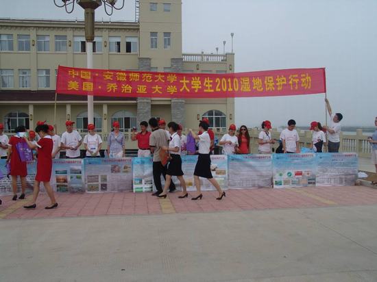 7月3日至7月12日,m88官网“江淮环保行”沱湖省级自然保护区志愿服务队开展了主题为“宣传湿地知识,唤起环保意识;调查沱湖资源,维护生态安全”的志愿服务活动。本次活动由安徽师范老员工命科学公司、美国乔治亚大学、校“产学研”基地沱湖省级自然保护区、五河县环保局、蚌埠市环保局联合共同开展。生科院经理席贻龙、校科研处副处长吴孝兵参加了中美师生的交流学习座谈会。重点团队由院团委书记汪倩倩带队,涂传林、陈明林、严云志副教授和温新利博士全程指导。