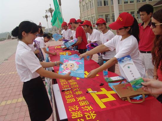 7月11日,团队在五河县开展了湿地保护宣传活动。队员们在沱湖岸边拉起了“保护地球之肾,让湖泊休养生息”的横幅,并宣传了湿地保护的注意事项。广大居民在志愿者的引导下,观看了湿地保护的展板和宣传折页,纷纷在“我爱沱湖,我爱五河”的条幅上签名,并表示会将环保意识贯穿于以后的生产和生活之中。志愿者们还走访了附近居民,发放调查问卷,并赠送了环保购物袋。湿地素有“地球之肾”的美称,有着很高的生态效益和经济效益。此次湿地保护宣传活动旨在唤起人们的环境保护意识,为保护湿地尽一份力,活动取得了良好的社会反响。(生科院 贾丹丹/周宇阳)
