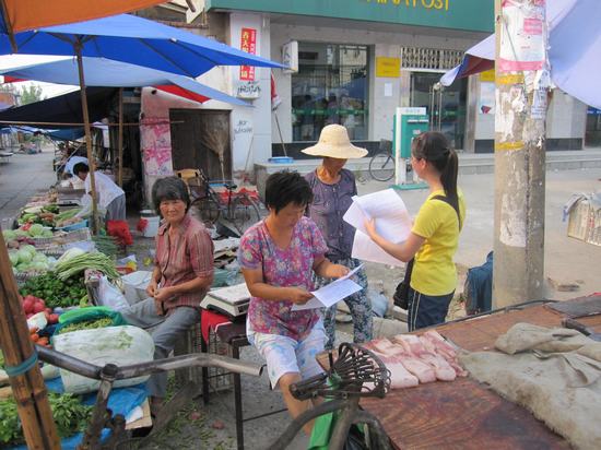 志愿者们还来到大街小巷向当地居民百姓宣传低碳理念。老百姓们对“低碳”这个词比较陌生,经过志愿者们耐心详细讲解之后,许多居民都能领会,并表示在以后的生活中自觉的节约资源,在点滴小事中注意做到低碳。