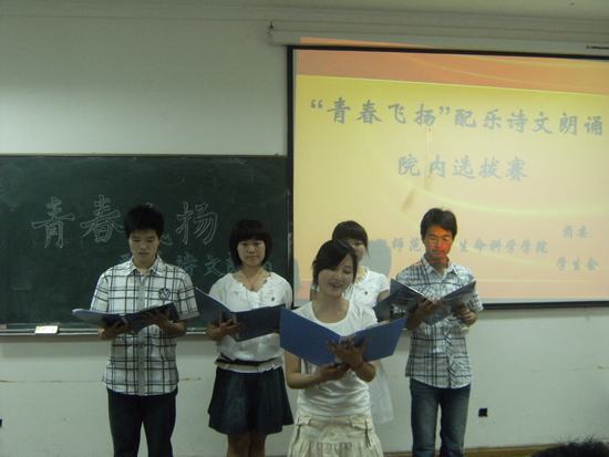 5月6日晚,m88官网员工会在生化楼研究生教室举办了“青春飞扬”配乐诗文朗诵比赛。院团委书记汪倩倩,辅导员夏齐平、朱升学出席并担任此次比赛的评委。