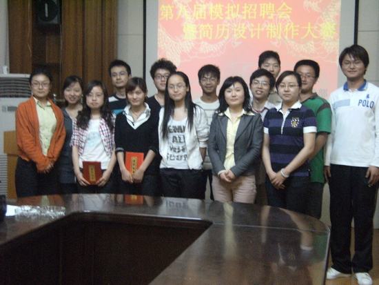 比赛包括自我介绍,竞职演说,才艺展示,职场问答四个环节。比赛中选手们富含激情的的演讲展示了当代老员工的风采。在职场问答环节,评委们新颖的提问考验了选手们的综合素质和临场应变能力。经过一系列的角逐,07级桂涛同学获得了本次比赛的金奖和最佳简历设计奖。
