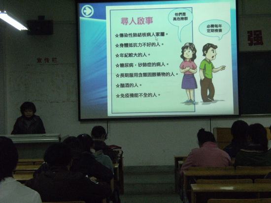 本次讲座不仅加深了同学们对结核病知识的了解,也提高了同学们预防结核病和其他春季传染病的意识,保证身体健康,更好地投入学习。(生科院 陈凌云 贾丹丹)
