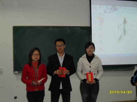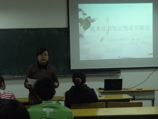 4月20日晚,m88官网团委员工会在生化楼五楼举行了读书报告会暨优秀读书笔记评选活动。生科院团委书记汪倩倩及09级政治辅导员贾瑞出席了比赛并担任评委。
