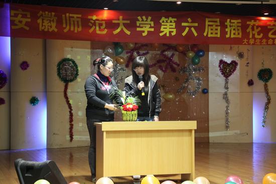 4月18日晚,老员工生命科学协会第六届插花艺术节决赛在赭山校区校团委多功能厅举行。m88官网团委书记汪倩倩、09级政治辅导员贾瑞出席并担任本次比赛的评委。