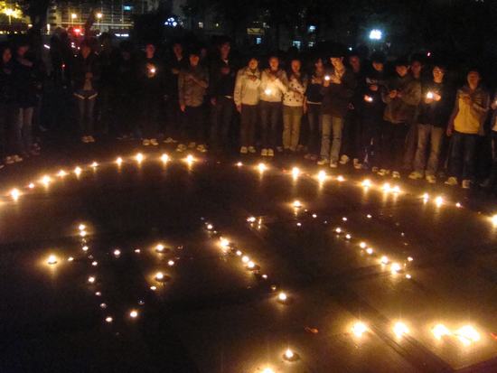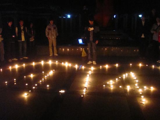 23日晚,全体同学在荷园举行了以“大爱无疆、祈福玉树”为主题的祈福活动,辅导员张文君老师也参加了此活动。夜幕下的荷园寂静而肃穆,闪烁的红烛组成了心形的光环,4.14三个数字在心形光环中更显沉重和忧伤。同学们小心翼翼的点亮了红烛,在缓慢而低沉的音乐中,黄小亮同学代表全体师生致悼词,以此拉开了活动的序幕。接着,在主持人郎君超的引导下,大家将左手放在胸前,默哀三分钟,荷园里充满了同学们沉重的哀思和深深的祝福,随风抖动的烛光似乎也在低头啜泣,只望这载满祝福的烛火能够减轻玉树人民的伤痛。最后,张老师对活动进行了总结,鼓励我们扩大宣传争取为玉树做更多的贡献,也提醒我们要珍惜生命,珍惜现在的生活,珍惜我们的青春,踏实认真地做好自己该做的,尽好自己的责任与义务,实现自己的人生价值。活动在同学们深深鞠躬后结束。