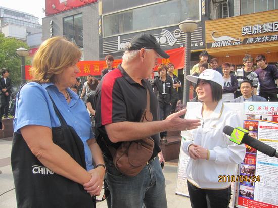 24日下午,十四名志愿者前往中江桥广场协助“为青海玉树义演募捐”活动,此活动由芜湖市关工委、市教育电视台、市慈善总会主办,下午两点义演开始,我班同学提前到达了指定地点,各司其职。有的同学负责将过往市民指引到义演的地点,有的同学负责帮助广场上的小朋友义卖玩具、书本和报纸,还有的负责宣传并引导市民募捐。最引人注目的是鲁丹同学用流利的英语和一对外国夫妇进行交流,那一对夫妇捐助了一百元并对这个活动给予很高的评价。在电视台对刘茜鑫同学进行采访时,他表达了我们志愿者的共同心声:当志愿者是一件很微不足道的事,可是我们只想用自己的方式为灾区做一些力所能及的事情,表达我们对灾区的人民最诚挚的祝福。(生科院 瞿文艳)