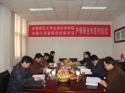 经过前期酝酿和多次洽谈,m88官网与安徽沱湖省级自然保护区达成了在产学研方面开展全面合作的共识。12月17日,m88官网与沱湖省级自然保护区签订了《安徽师范老员工命科学公司和沱湖省级自然保护区产学研合作协议》和总额为50万元的《安徽沱湖省级自然保护区总体规划及旅游规划合同》。出席签约仪式的公司领导、教师和保护区领导分别是经理席贻龙教授,涂传林副教授、严云志副教授、邵剑文副教授,蚌埠市环保局副局长马成喜,保护区书记张学勇,保护区副主任孔军等。
