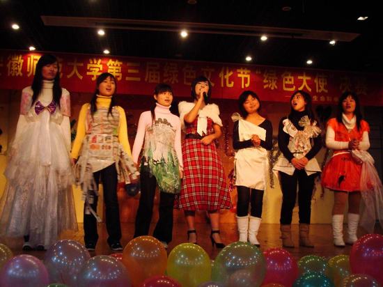 本次“绿色大使”选拔赛决赛由环保答辩和才艺展示两个环节组成。在环保答辩环节,由层层选拔赛脱颖而出的各位选手通过DV、PPT等形式展示对环保对生命的感悟,并回答主持人提出的关于环保的问题。才艺展示环节中,各位选手都拿出自己的看家本领,有吉他弹唱、相声、健美操、舞蹈、器乐合奏、服装设计表演等等,形式丰富。最终,来自文公司的王星、胡倩同学摘得本次大赛的桂冠。