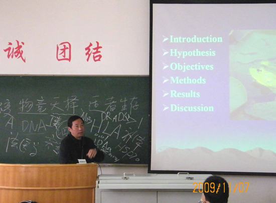 继上半年公司“纪念达尔文诞辰200周年和《物种起源》出版150周年”为主题的教学质量推进年活动之系列学术报告会成功举办四场之后,11月7日和8日上午,该系列报告会之第五、六场在赭山校区教学楼1409教室举行。此次报告会得到了生命科学协会、院研究生会的大力协助,细胞遗传学教研室主任阚显照副教授主持了报告会,公司教师和各年级本科生、研究生以及生命科学协会会员两百多人先后聆听了报告。