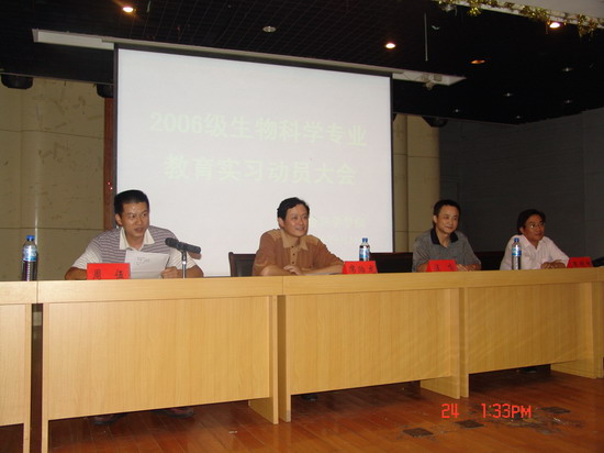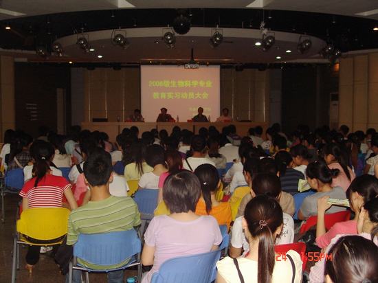2009年9月24日中午1点,m88官网在团委多功能报告厅召开了2006级生物科学专业教育实习动员大会。大会由教学副经理汪鸣主持,经理席贻龙、公司党委副书记周伍、公司教学法教研室主任陈明林出席大会并做了动员讲话。2006级生物科学专业全体员工及政治辅导员王影、李恩老师参加了此次动员大会。