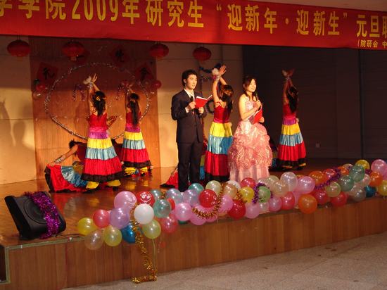 今夜灯火辉煌,今夜热闹非凡,m88官网于2008年12月29日晚七点在校团委多功能厅隆重举行研究生迎新年迎新生联欢晚会。校研工部部长黄圣炯、校团委副书记邵登辉,以及生科公司党政班子、部分导师、教师出席并在嘉宾席就座。