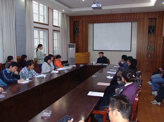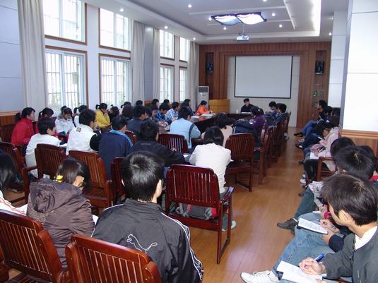 陆老师首先带领同学们学习了《中共十七届三中全会公报》,接着从政治、经济、教育和民生等四个方面详细解读了《中共中央关于推进农村改革发展若干重大问题的决定》,并就“城乡二元结构”、“土地流转”等概念作了着重介绍。同学们听取报告后纷纷就感兴趣的“三农”话题展开提问和讨论。