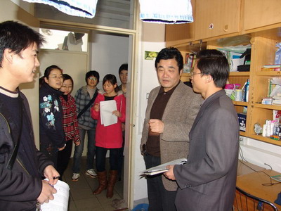 11月27日上午,公司党委王景旭书记在研究生辅导员邵剑文以及研究生会干部的陪同下对各年级硕士、博士研究生80多个宿舍进行检查。11月25、26日两天晚上,周伍副书记率领各年级辅导员逐一检查了220余个本科生宿舍。检查的重点是私拉电线、使用大功率电器及违规使用电脑等情况。