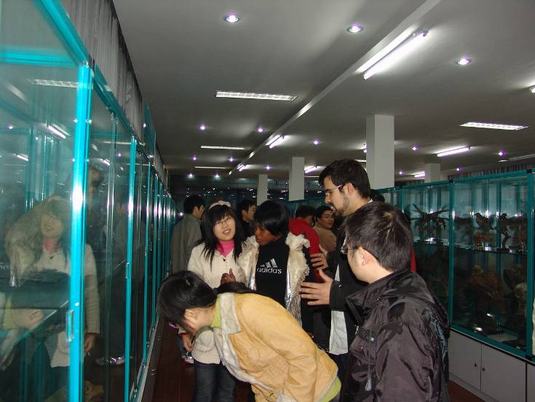 在解说员的带领下,生科院的同学们陪同职工们参观了标本馆的各个展区,并用汉语和英语向职工们介绍了栩栩如生的标本,还简要介绍了标本的制作和保存知识。参观过程中,中外员工自由组合,分组欣赏和讨论感兴趣的展品,特别是一些我国特有的珍稀物种。