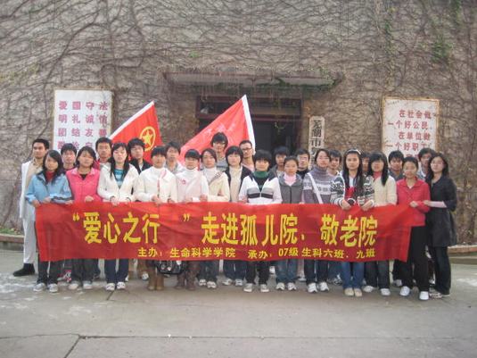 m88官网团委于11月15日开展了“走进敬老院、孤儿院‘爱心之行’”活动,活动由2007级生物科学类6班和9班承办,并通过海报宣传面向赭山校区招募了更多富有爱心的同学参与此次活动。