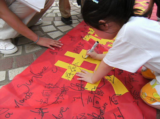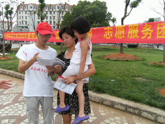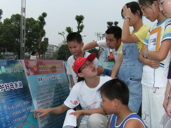 下午四时许,志愿者们来到市政广场,拉起横幅,打出标语,布置展板,拉开了活动的序幕,志愿者们通过向过往市民散发调查问卷,宣传手册,以及展板的讲解与横幅的签字等方式来宣传环保知识,传播环保思想。市民们纷纷表现出对这项活动的高涨热情,积极参与:有些小朋友在展板前认真听着志愿者的讲解,有些老人同志愿者谈起了巢湖的过去与现状,以及自己的担忧和希望,还有一些媒体的记者也赶到了活动的现场进行采访、拍摄、希望通过他们的镜头能进一步扩大我们活动的影响,让更多的人来关注我们的母亲湖,来保护我们的母亲湖。