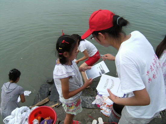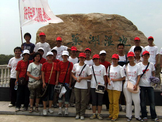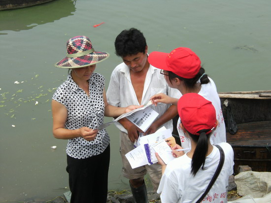 顶着炎炎烈日,志愿者们徒步沿湖进行水质、生境调研,并下到湖边进行水质采样,走访渔民。在走访中,渔民们一方面队水质污染致使鱼量减产表示出担忧,另一方面又肯定了治理工作取得的初步成果,对治理前景充满希望。最后,志愿者们来到巢湖湿地,进行湿地生态考察。