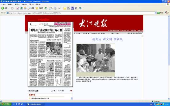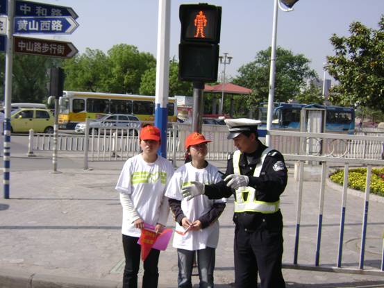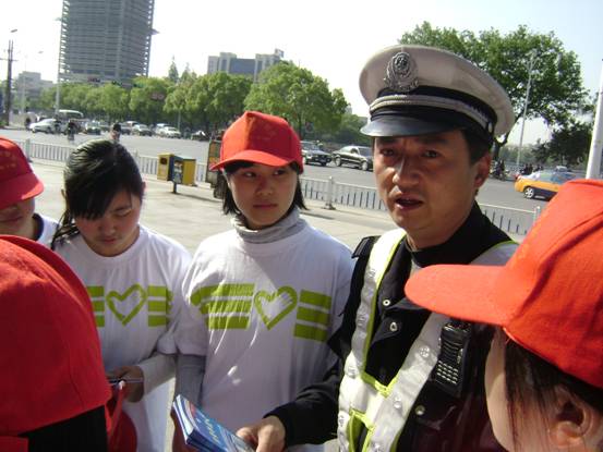 4月25日的全国交通安全宣传日,志愿者们还参加了镜湖交警三中队开展的“平安迎奥运,有序交通我参与”的宣传活动,主动走上街头,向过往市民发放宣传材料,受到交警们的称赞,芜湖电视台新闻频道和《大江晚报》都给予了报道。(07级生物科学类4班 刘璐)